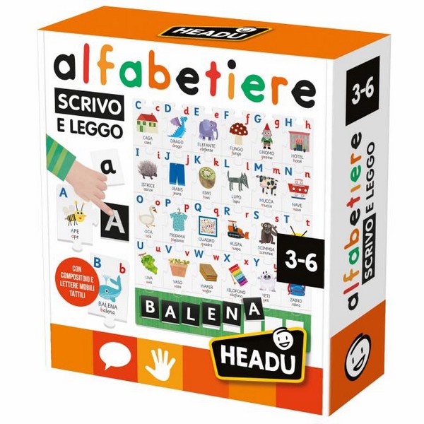 I bambini costruiscono il grande alfabetiere ed imparano a leggere lettere e parole. In più con le lettere mobili e tattili, formano le parole sul compositoio sia in maiuscolo che in minuscolo imparando a scrivere.