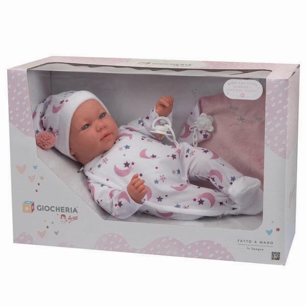 Bambola 45 cm con corpo morbido, braccia e gambe in vinile.