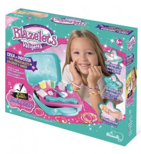 Crea i tuoi gioielli gommosi personalizzati con il magico stampo e la polverina Blazelets aggiungendo solo dell’acqua. Scegli i colori, versa la polverina nello stampo, aggiungi l’acqua, aspetta 5 minuti, decora i glitter e i tuoi gioielli saranno pronti da indossare. Contenuto 1 valigetta, 1 stampo per braccialetti Brazelets, 1 pennello, 1 dispenser di polvere Brazelets, 5 bustine di polvere Brazelets (rosa, giallo, verde, bianco e viola), 5 fili in plastica, 1 bustina di glitter, 5 chiusure ermetiche in plastica.