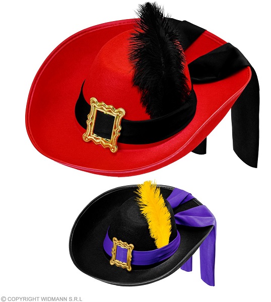 Cappello con piuma moschettiere rosso/nero **