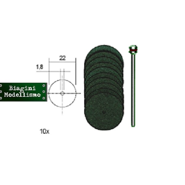 Dischi realizzati con un composto speciale di diametro 22 o 38 x 0,7 mm. Utilizzato per separare leghe e metalli, acciai inossidabili e metalli non ferrosi. Può essere utilizzato anche per il taglio di legno e plastica. Albero di Ø 2,35 mm.
