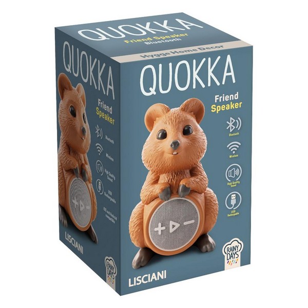 Il simpatico Quokka, famoso per il suo sorriso, diventa uno speaker bluetooth senza fili. Alza il volume, sorridi e ascolta la tua musica preferita!