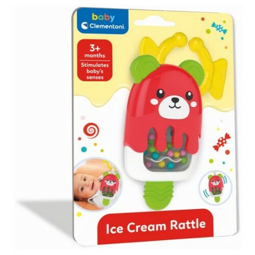 Un sonaglino a forma di Gelato con texture da mordicchiare e un pratico anello per appenderlo alla culla o al passeggino.