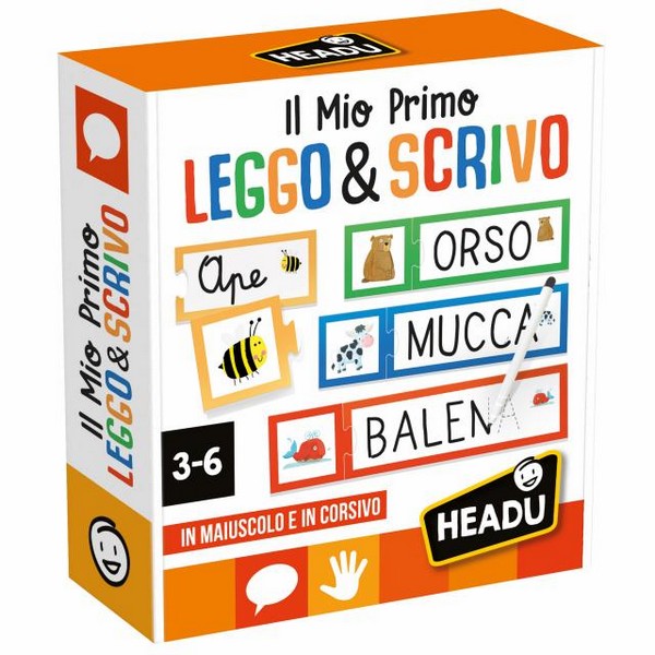 Il bambino associa le immagini alle parole. In più, con il metodo a ricalco e grazie alle tessere di grande dimensione, impara a scrivere le parole in maiuscolo e corsivo. Con il pennarello magico, può cancellare e affinare il gesto grafico.