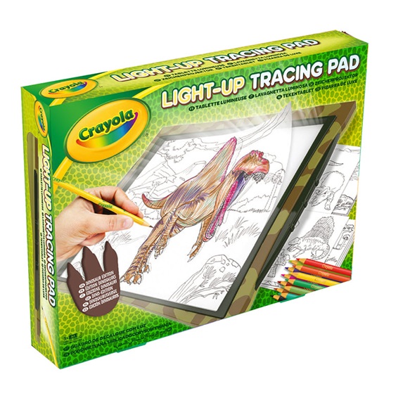 Lavagnetta luminosa a tema dinosauro per creare ambientazioni preistoriche! È sufficiente posizionare un foglio per ricalco sullo schermo e aggiungere un foglio bianco. La luce intensa del LED consente di ricalcare facilmente l’immagine. È possibile poi aggiungere dettagli e sfondi per completare la scenetta e infine colorarli con le matite incluse! La confezione include una guida al disegno che insegna a realizzare passo a passo dopo passo un vero dinosauro.