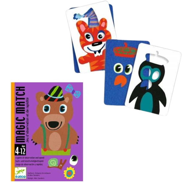 Chi sarà il più veloce a trovare gli occhi e gli accessori che appartengono al personaggio della carta bucata? Sovrapponete le due carte: se corrispondono, avete vinto!