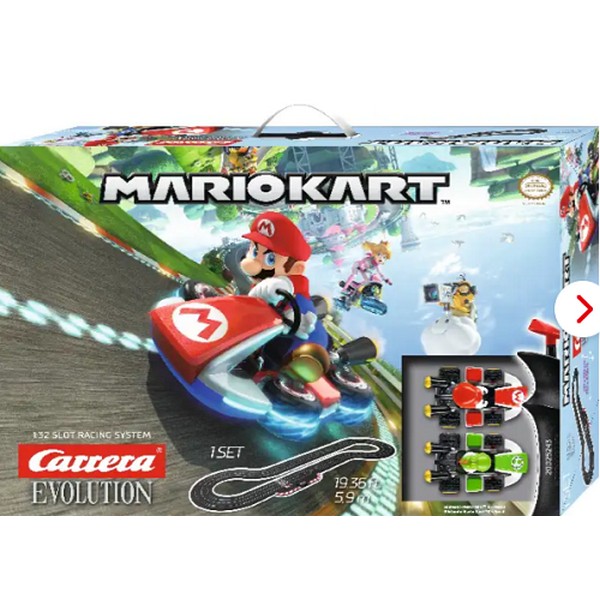 Anche i famosi eroi dei videogiochi dei famosi giochi di corse mario kart™ si sentono a casa lontano dallo schermo. Nel set Carrera EVOLUTION “Mario Kart 8™”, la figura cult Mario e il suo amico Yoshi iniziano gare rapide sui binari su una scala di 1:24. Grazie alla licenza originale Nintendo, i veicoli in scala 1:32 assomigliano esattamente alle loro controparti digitali e sono quindi un vero e proprio must-have non solo per gli appassionati di corse ma anche per gli amanti dei videogiochi.