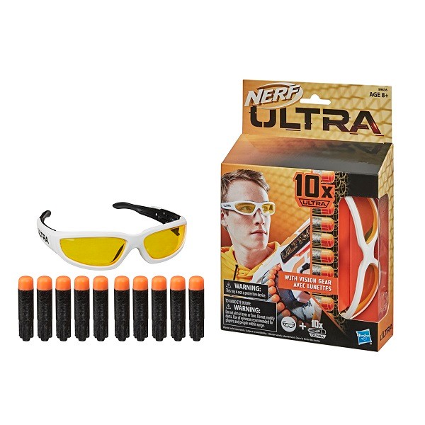 La confezione contiene un paio di occhiali protettivi e 10 munizioni Ultra