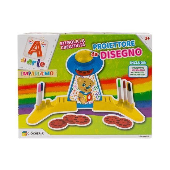 Contiene un proiettore per imparare a disegnare, 6 lenti di proiezione con soggetti differenti e 6 pennarelli.