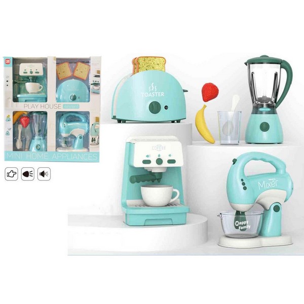 Set da gioco con elettrodomestici da cucina include macchina per il caffe’ alta 16cm , frullatore alto 18cm, mixer alto 17cm e tostapane alto 16cm. Gli elettrodomestici da cucina sono dotati di luci e suoni realistici, cosi’ il tuo bambino potra’ divertirsi per ore e ore. I bambini possono far finta di fare le stesse cose che fanno nella cucina reale! Il set di giocattoli per elettrodomestici da cucina e’ realizzato in materiale plastico di alta qualita’. Il set di accessori da cucina giocattolo ispira i bambini ad assumere il ruolo di chef. Funziona perfettamente come giocattolo educativo, incoraggiando l’immaginazione e il pensiero creativo.