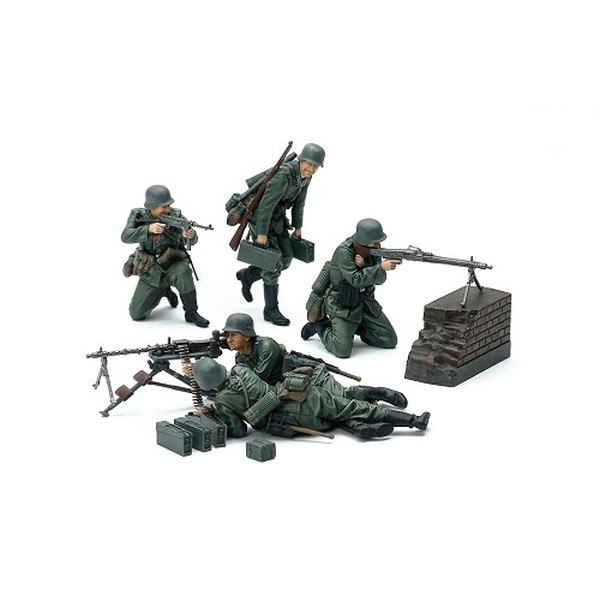 L’articolo 35038 1/35 German Machine Gun Troops è popolare tra i modellisti da molto tempo sin dalla sua uscita nel 1974; ora Tamiya dà il benvenuto a un set di truppe Tedesche con mitragliatrici ricreate mediante una tecnologia di stampaggio all’avanguardia.
