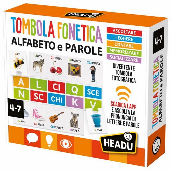 Unica e originale, questa tombola insegna ai bambini a riconoscere le lettere dell’alfabeto e a leggere le prime parole associando i grafemi ai fonemi. In più, con l’app dedicata, ascoltano la corretta pronuncia.