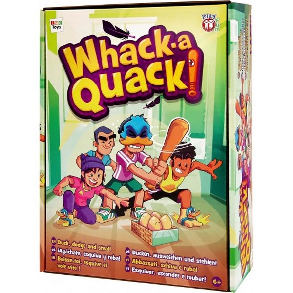 Preparatevi per Whack-a-Quack! In questo gioco dinamico, un giocatore deve proteggere le uova, usando una maschera e una mazza gonfiabile per proteggere le preziose uova. Nel frattempo, gli altri giocatori, dotati di zampette da papera squittenti, cercano di rubare le uova senza farsi catturare. La sfida è schivare la mazza in movimento e afferrare le uova. Con regole semplici e un divertimento senza fine, Whack-a-Quack offre un divertimento ad alta energia per tutte le età con gli amici.